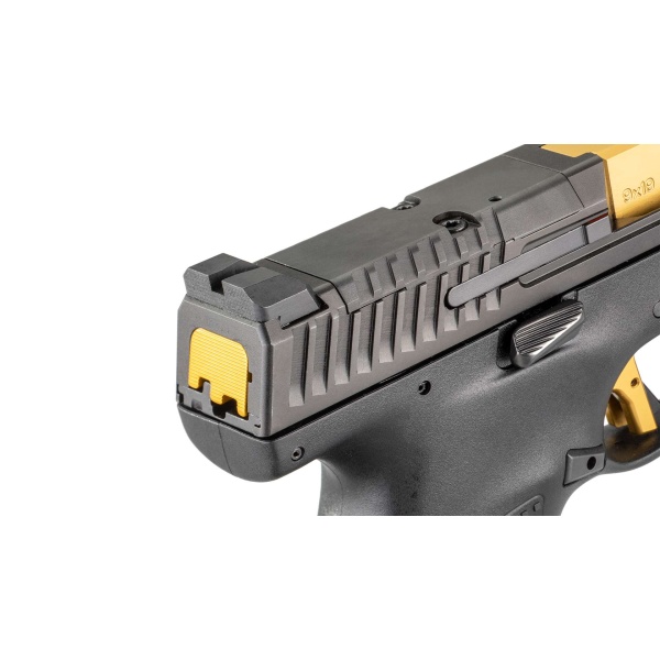 While many of CZ’s tactical handguns were born of competition guns, the new CZ P-10 F Competition-Ready pistol followed the opposite trajectory. The new P-10 F Competition-Ready utilizes the full-size P-10 F frame and has a barrel and slide that are a half-inch longer, providing a longer sight radius for the included fiber optic front sight and fixed serrated rear sight. Additionally, like other P-10 models, the slide is milled to accept mounting plates for the most popular micro red-dot optics on the market. The pistol is outfitted with an Apex Tactical extended magazine catch, extended slide stop, back slide cover along with a HB Industries trigger for increased performance. Since every competition gun needs a little flash, gold accents on the barrel slide cover and on the trigger and three magazines equipped with aluminum Henning Group bases make this handgun stand out in the P-10 line and on the firing line.